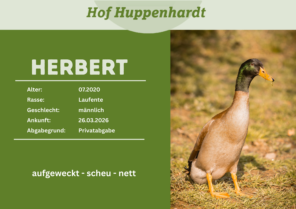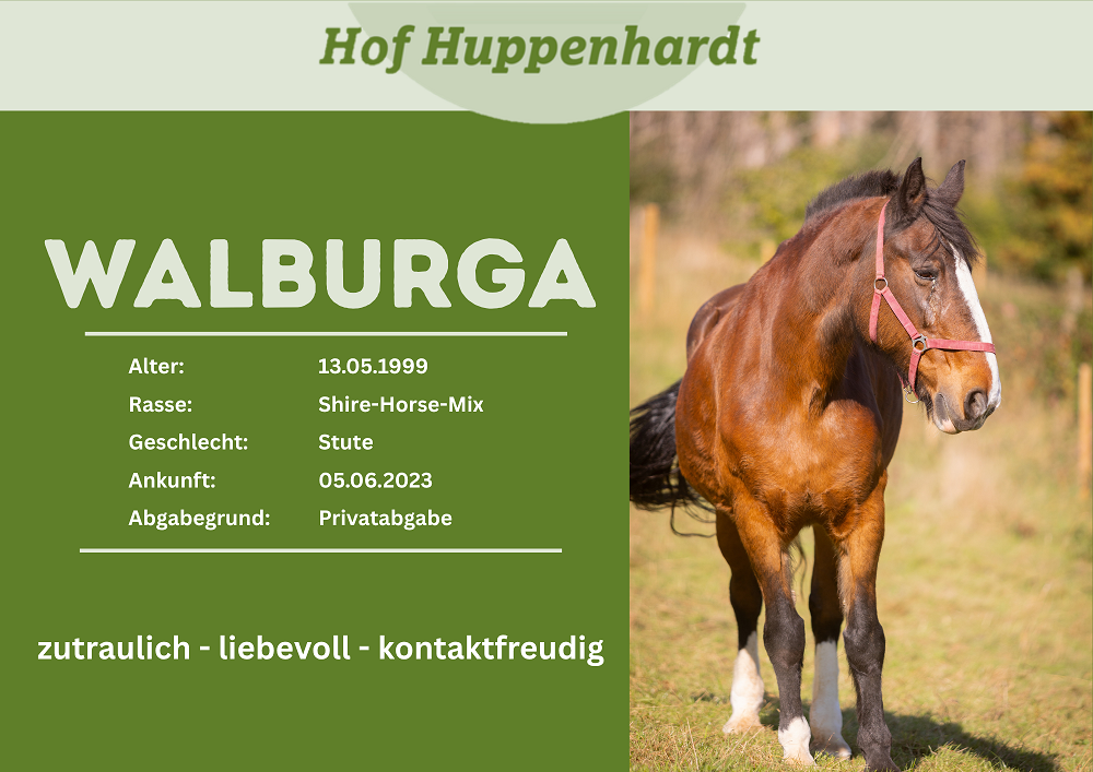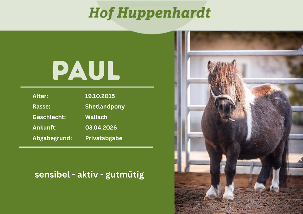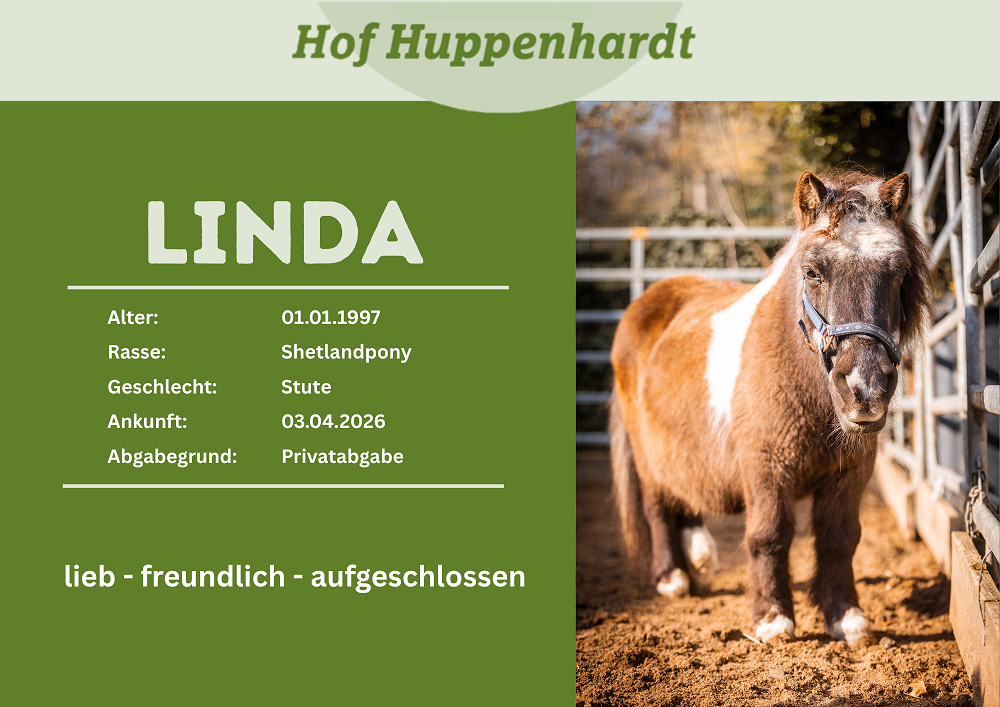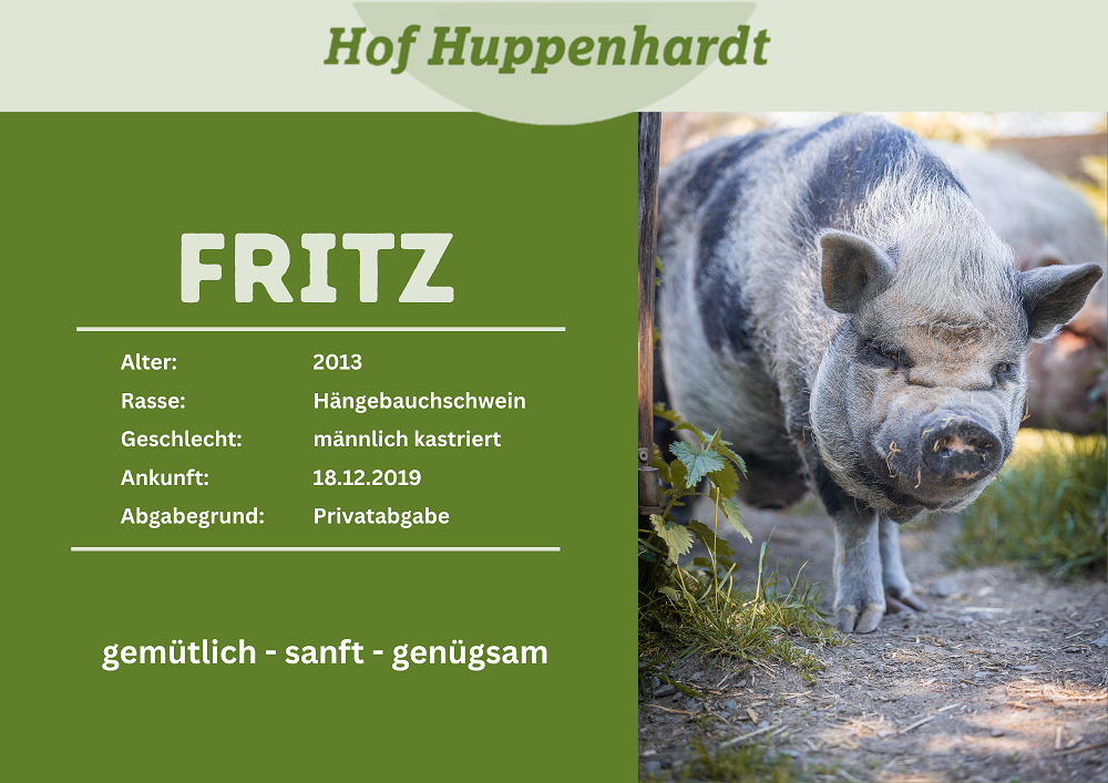 Hinter jedem Tier, dem wir auf Hof Huppenhardt ein (idealerweise vorübergehendes) Zuhause bieten, steckt eine besondere Geschichte. In unseren Steckbriefen stellen wir unsere wundervolle Truppe vor. Wir freuen uns sehr, wenn auch Sie sich in eines davon verlieben und eine Patenschaft oder gar ein Zuhause bieten!