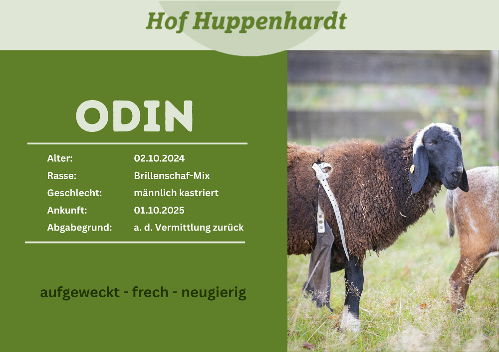 Odin ist ein süßer Schafsbock, der immer auf einen zu rennt, wenn man die Weide betritt. Nach einer missglückten Kastration kam es bei Odin zu pubertären Verhaltensänderungen, die dazu führten, dass er nicht länger in der Gruppe, die wir vor wenigen Monaten vermittelt haben, bleiben konnte. Damit Odin einen Kameraden hat, zog Teddy mit ihm zu uns zurück. Wir haben uns um das Problem gekümmert und suchen jetzt ein neues Zuhause für die beiden.Steckbrief
