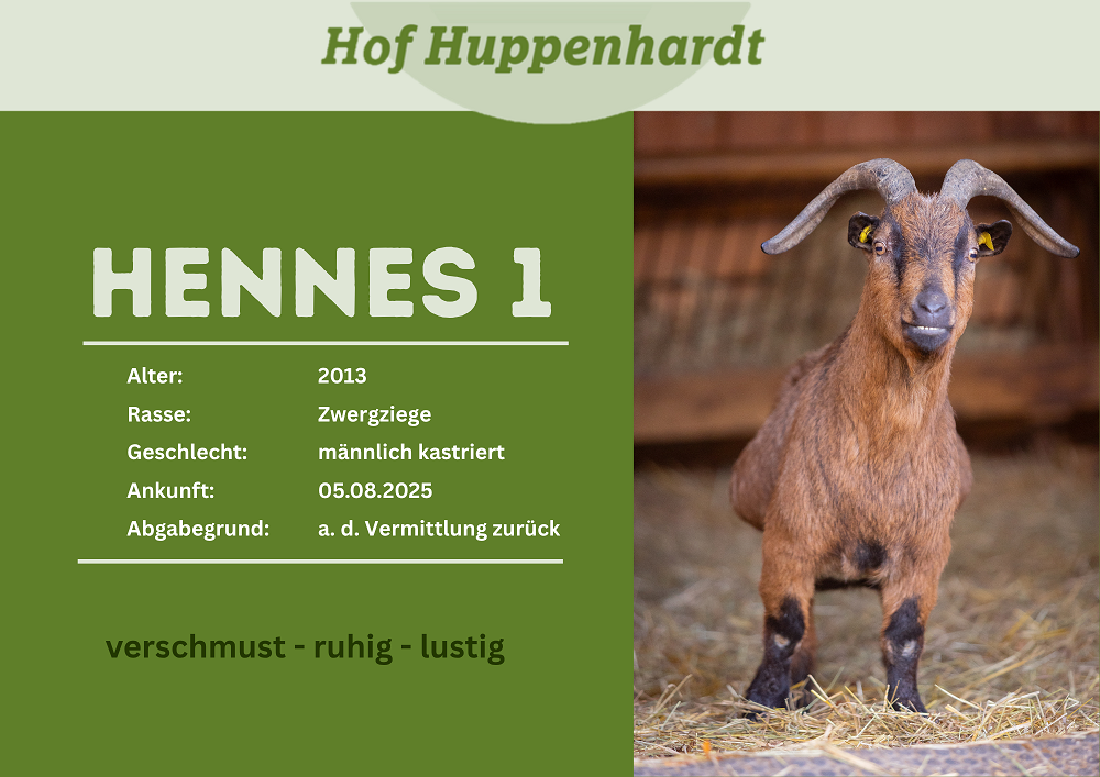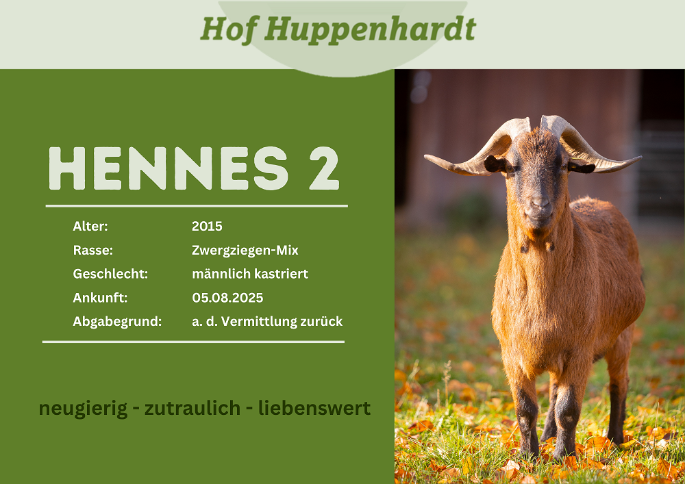 Hennes und Hennes kamen Anfang August zu uns auf den Hof. Der Besitzer der Fußballziegen verstarb leider und keiner der Angehörigen konnte die zwei aufnehmen. Also suchen wir jetzt ein schönes neues Zuhause. Die Hennesse zeigen sich bei uns als sehr neugierige, zutrauliche Ziegen, die keine Probleme mit Artgenossen oder Menschen haben. Im Gegenteil sie stehen immer als erstes am Tor, wenn wir die Weide betreten.Steckbrief