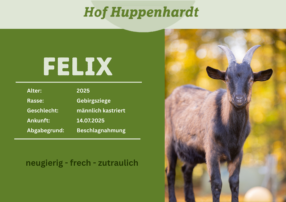 Felix hat Unvorstellbares hinter sich. Mehrere Minuten lang hat er zugesehen, wie sein Bruder neben ihm qualvoll ausgeblutet ist. Hat sein Blut gerochen, gesehen, wie das Leben ihn verließ und seine Schreie gehört. So laute Schreie, dass sogar die Polizei alarmiert wurde. Die Beamten konnten den Ziegenbock befreien. Für seinen Bruder kam leider jede Hilfe zu spät. Das Veterinäramt wurde eingeschaltet und hat sofort gehandelt. Noch am gleichen Abend holte die Tara Tierhilfe Felix ab und brachte ihn zu uns auf den Hof. Vielen Dank dafür! Hier kann der kleine Kerl sein traumatisches Ereignis erstmal verarbeiten. Wir hoffen, dass Felix sich schnell erholt und bald wieder ein sorgloses Ziegenleben führen kann.Steckbrief