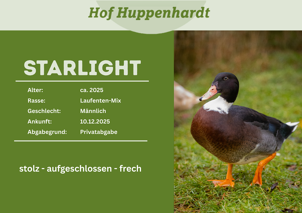 Hinter jedem unserer Tiere, denen wir auf Hof Huppenhardt ein (idealerweise vorübergehendes) Zuhause bieten, steckt eine besondere Geschichte. In unseren Steckbriefen stellen wir unsere wundervolle Truppe vor. Wir freuen uns sehr, wenn auch Sie sich in eines davon verlieben und eine Patenschaft oder gar ein Zuhause bieten!