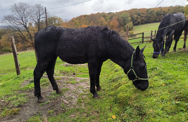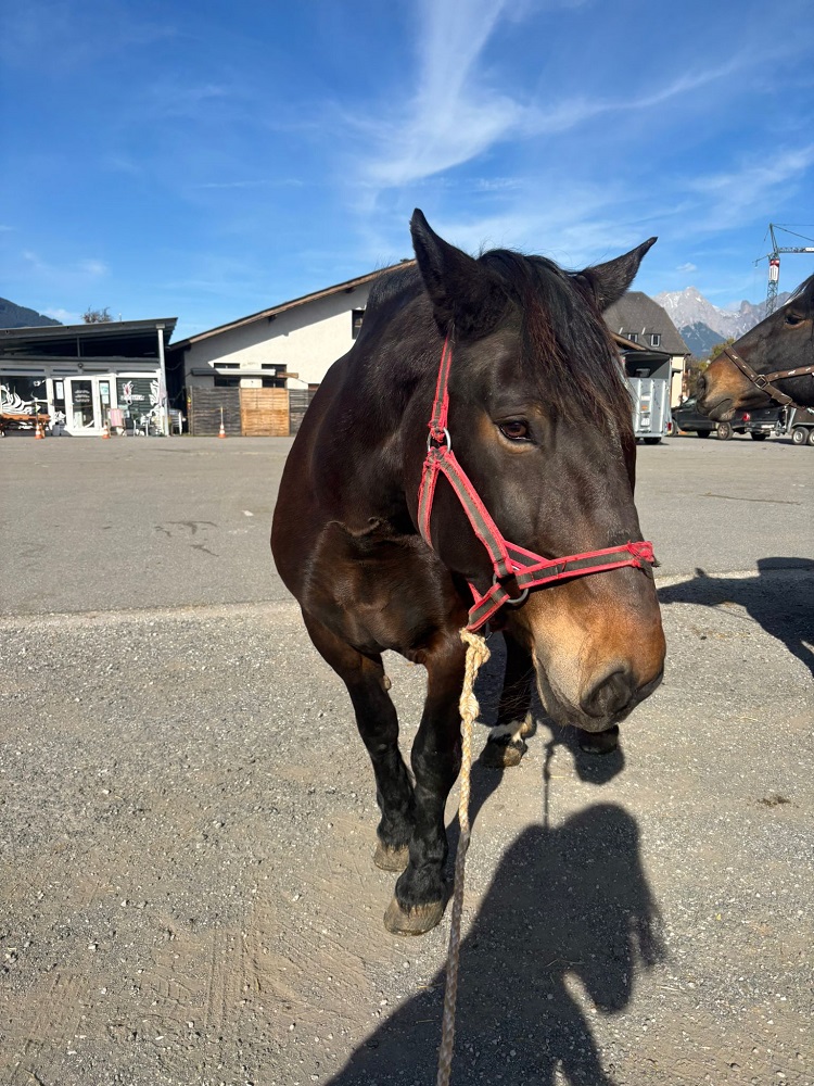 Kalinka, eigentlich Kent-Kalinka, ist eine ehemalige Zuchtstute, die diesen Herbst in Maishofen versteigert werden sollte. Mit ihren, in unseren Augen noch jungen, 18 Jahren war sie als Zuchtstute ausrangiert und das älteste Pferd auf der Auktion. Außer uns bot nur der Schlachter auf die Stute. Zu Glück könnten wir den Zuschlag sicher und Kalinka so eine zweite Chance geben. Wir haben eine chronische Rehe bei ihr festgestellt, allerdings weißt sie bisher keine Schübe oder ähnliches auf und geht bei uns auch normal mit auf die Weide. Menschen gegenüber ist sie total verschmust und anhänglich. Wir würden uns sehr freuen, wenn Kalinka noch ein liebevolles Zuhause findet, indem sie einfach Pferd sein darf.Steckbrief