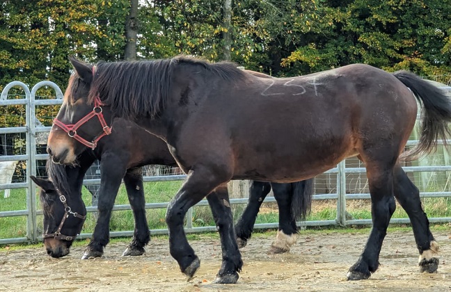 Die Shire-Horse-Mix-Stute kam aus einem traurigen Grund zu uns. Ihre Vorbesitzerin, die sie mit der Flasche aufzog, erkrankte schwer und konnte sich nicht mehr um ihren Schützling kümmern. Für die 24-jährige Pferdedame, Walburga, begann also ein neuer Lebensabschnitt auf Hof Huppenhardt. Wir haben Walburga als sehr liebe Vertreterin ihrer Art kennengelernt, die manchmal etwas schreckhaft ist und in der Herde eine rangniedrige Position einnimmt. Die Krankenakte der schönen Stute ist recht typisch für die einer Pferdeoma: Sie leidet an Cushing und Arthrose. Außerdem wurde sie als Fohlen an eine Sehne operiert und macht deshalb manchmal eine Art „Hahnentritt“, was glücklicherweise jedoch keine Schmerzen verursacht.Steckbrief